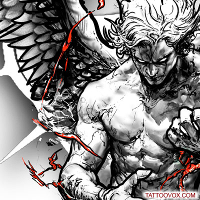 This tattoo design centers on a powerful visual paradox: a dark, heavily shaded angel whose body and wings are meticulously crafted to reveal a pristine, untouched cross of negative space at the composition’s heart. Rather than being drawn directly, the cross emerges as pure, glowing skin, formed by the intentional gaps between the angel’s posture, flowing robes, and sweeping wings. The striking contrast between the dense black ink of the celestial figure and the un-inked cruciform shape creates a divine “halo effect,” making the cross appear as a source of radiant light breaking through the spiritual darkness. This design beautifully symbolizes the idea that faith and sacrifice (the cross) are the invisible foundation that supports and gives shape to divine protection and grief (the angel), resulting in a deeply contemplative and visually arresting piece.