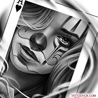 One of the most prominent symbols in Chicano-style tattooing is known as the Clown girl or Payasa. A payasa is a female clown and these seductive women are a hallmark of Los Angeles, this ace of heart card payasa tattoo design is an amazing idea for a full sleeve tattoo, A love for the game and the never-ending thrill that comes with testing your luck that’s what gambling tattoos symbolize.