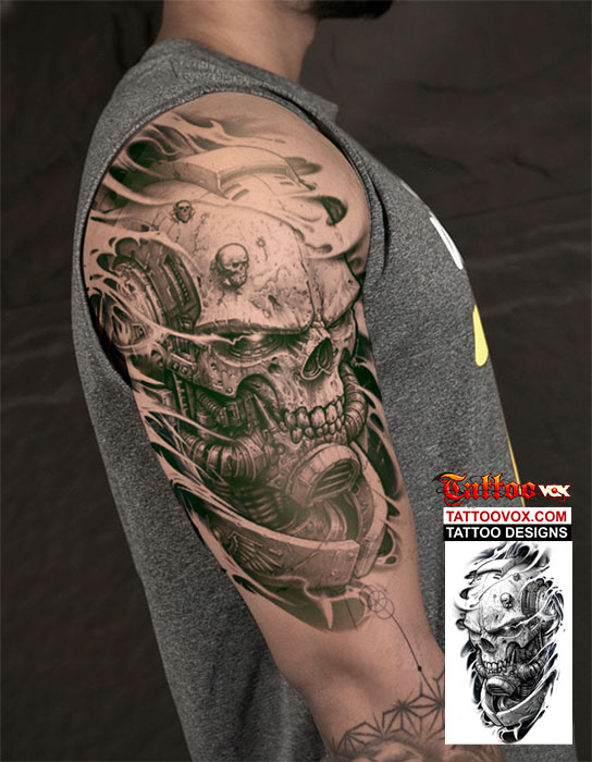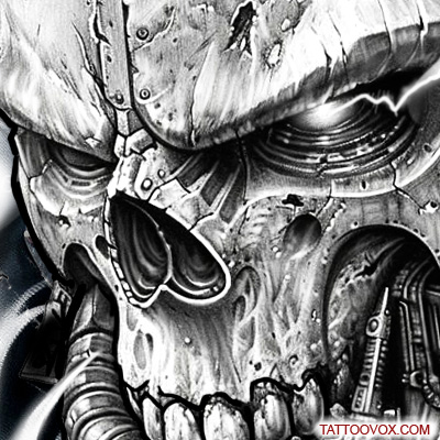 Cyberpunk Mecha Skull half sleeve Tattoo Drawing