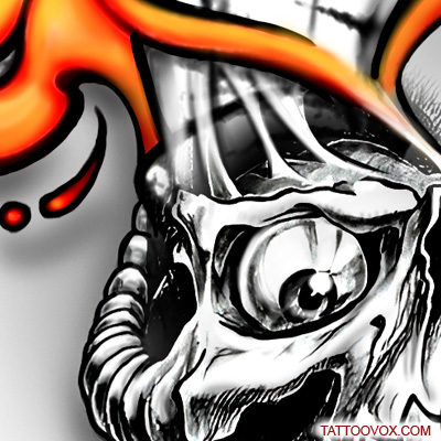 Tattoo Machine Skull with Flames tattoo design